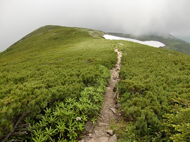 太郎小屋への途中の稜線。ときどきガスも掛かってきます。