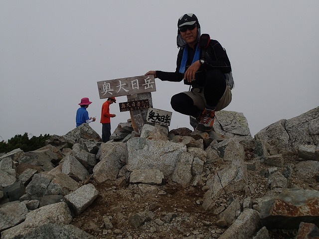 10:40 奥大日岳山頂到着 写真撮影の後カップヌードルで昼食。