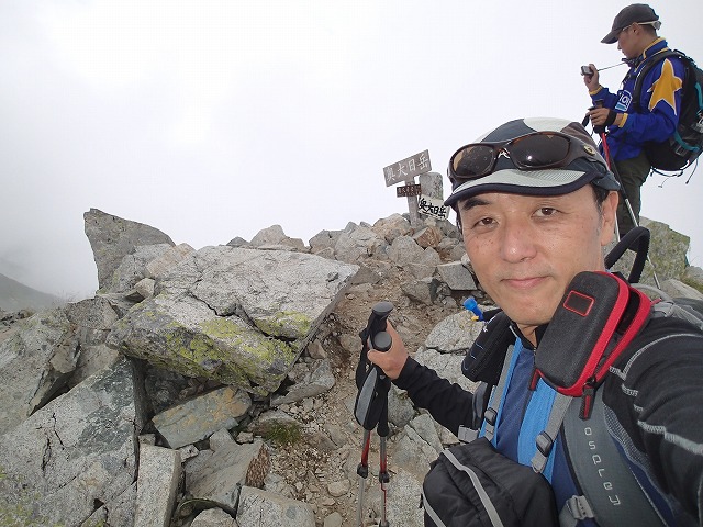 ガスで何も見えません。とにかく下山を急ぎます。雷にこんな稜線で会いたくありませんので。