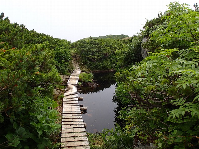 大日平小屋から牛ノ首までは、木道が整備されていますが、雨でぬれるとつるつると滑ります。