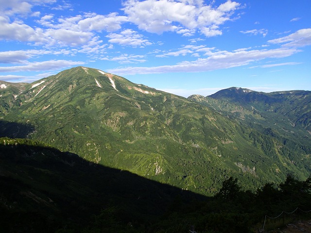 白馬岳に向かう整備された登山道です。稜線上の道とは思えません。いかに利用者多いかが分かります。