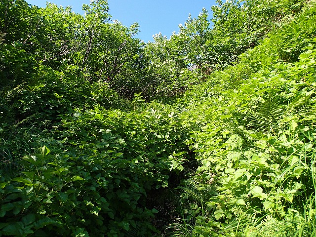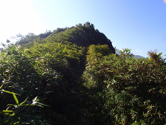 ブナクラ峠からは、笹藪をかき分け道を探しながらのハイクとなりました。
