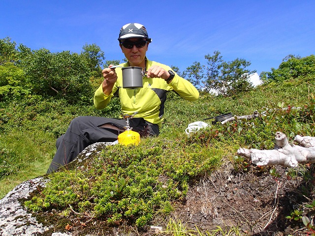 山頂は、奥大日の「七福園」のような感じです。一人でしたが、雄大な眺めを見ながら楽しい昼食をとることが出来ました。