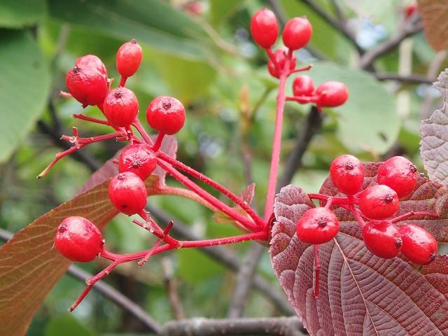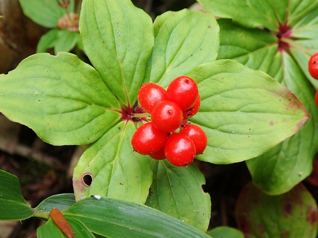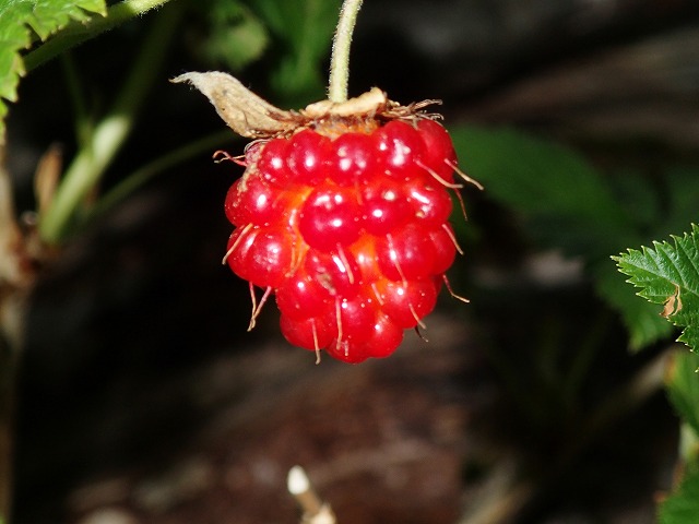 下山途中で出合った「ベニバナイチゴ」の実。思わず口に入れたくなります。