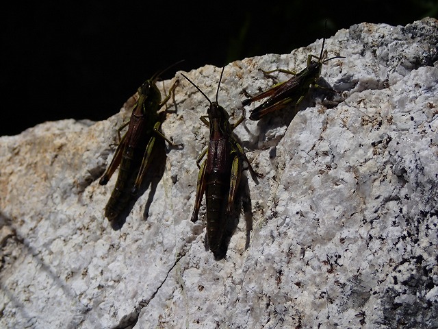 雷鳥の餌になるだろう「バッタ」が沢山います。こんな高山でもバッタは生息しているようです。