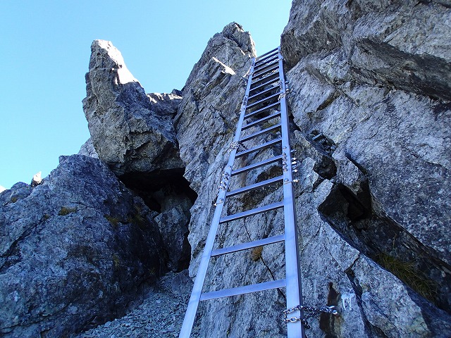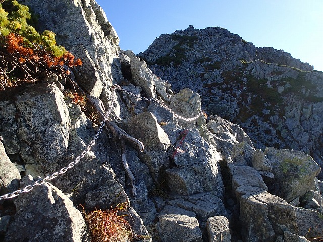 山荘からは、好天にも恵まれ、頂上まで約2時間 スリル満点の山行が出来ました。