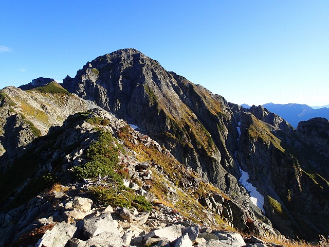 剱御前小屋から少し下りたところ。青い空に「剱岳」が良く映えます。