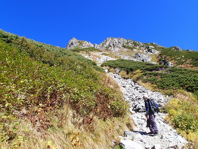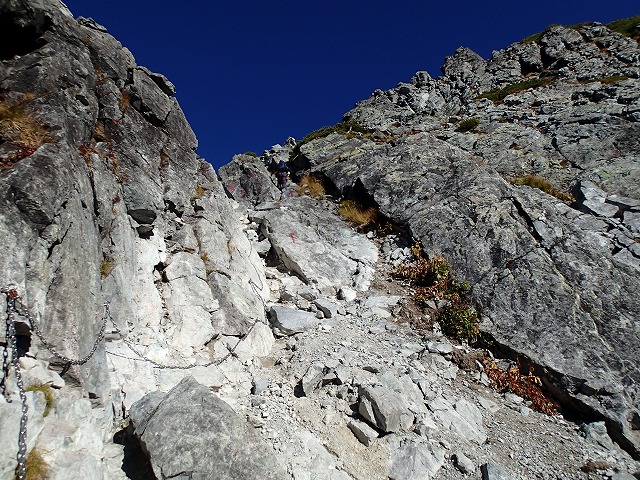 体力勝負では早月尾根コース、登攀勝負では、このコースなのでしょう。
