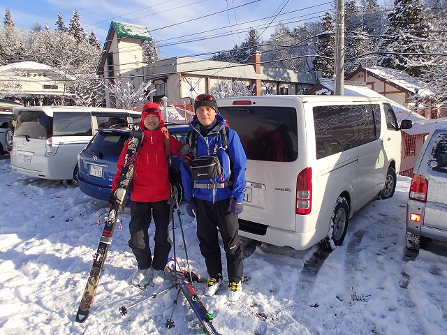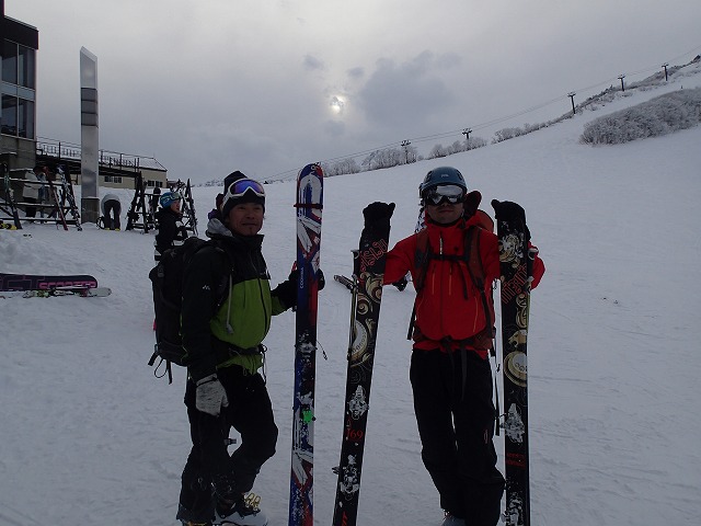 究極は、D沢あたりでしょうか。この後パウダーに入っていきますので、センター10cm以上のスキーがあっても損はしません。ご検討を。スキーテクニックも同時に練習していきましょう。昨年、栂池のバックカントリーの後、2人でプルークボーゲンをして切り替えのイメージ作りのレッスンもしています。目指せバンクテクニックです。