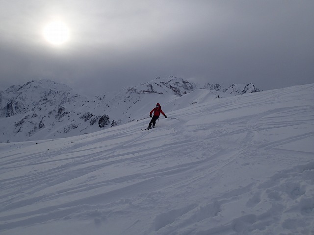 条件が悪いと、滑降できないことがあり、アルペンの山スキーに変更したそうです。