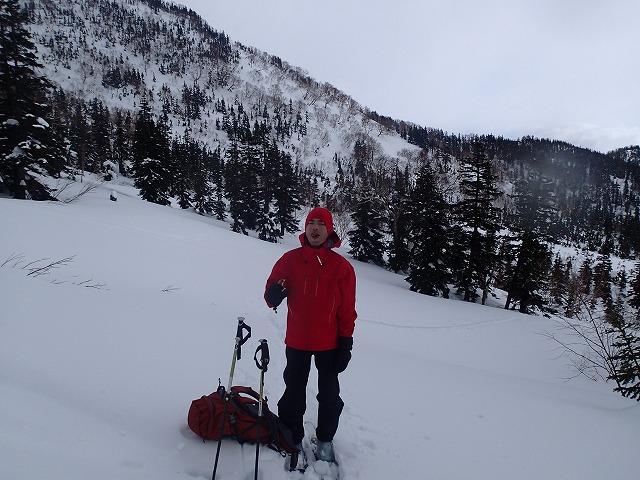 雪は重いですが、なんとかトレースがあるのでその跡をたどります。