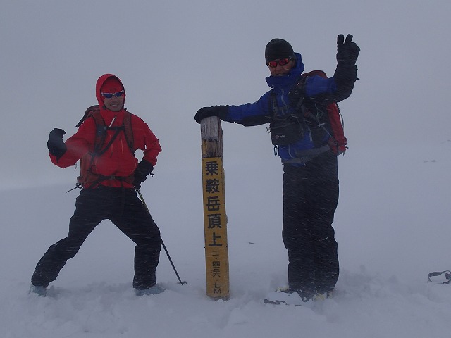 白馬乗鞍大滑降前の二人 斜面はよさそうです。まずは、天狗蔵君がドロップ・イン。