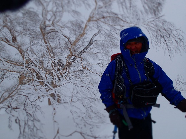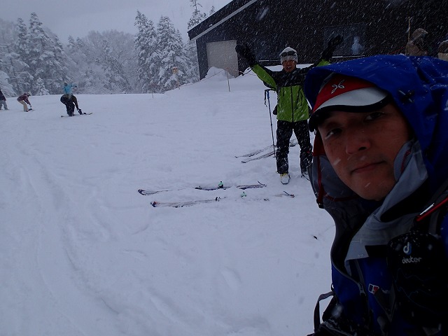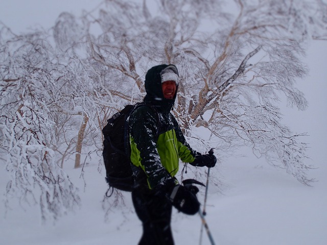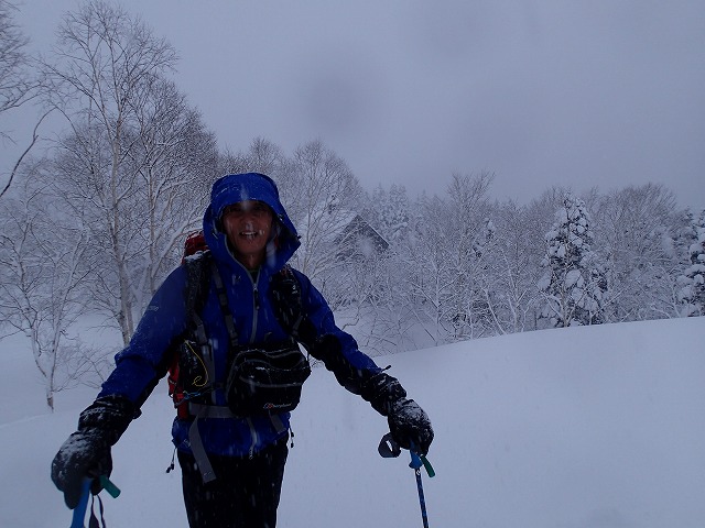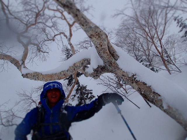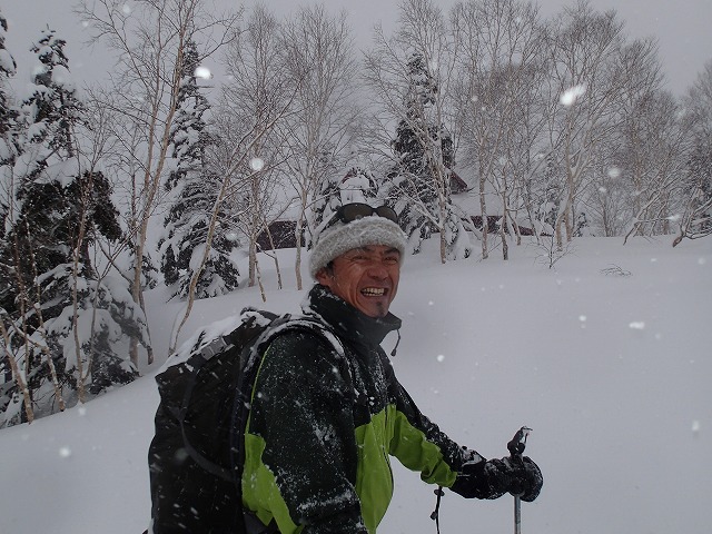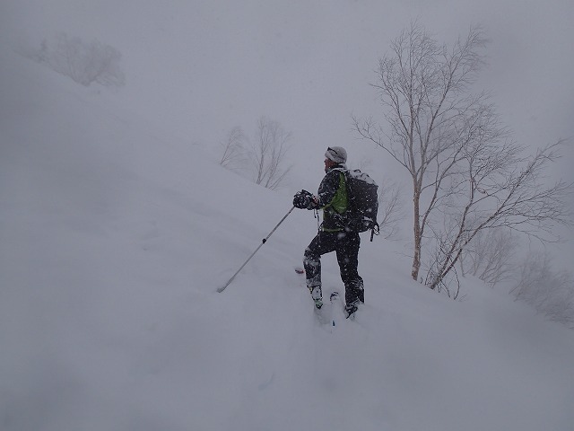 ホワイトアウトしているため、方向が分からず、こわごわの滑降でした。