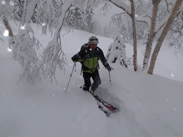 「今日は、パウダーいただきましょう。鵯尾根に決定。」