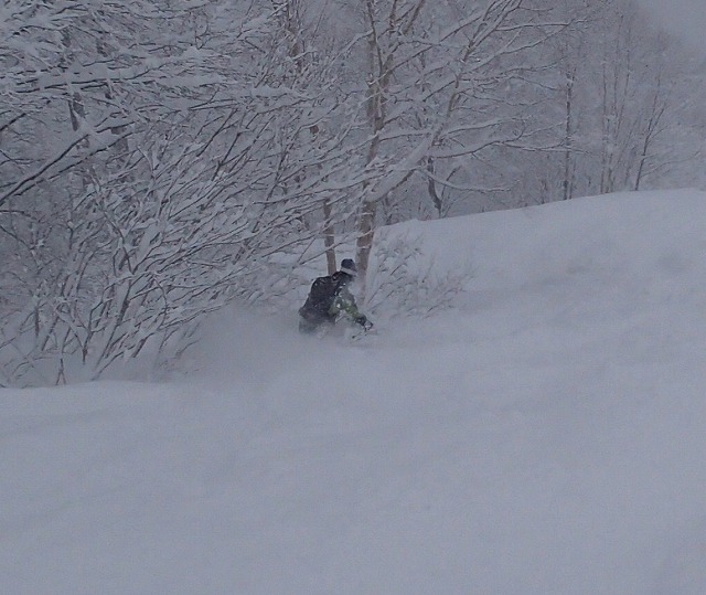 もう少し下れば、最高の斜面に出ることができたのですが、右に逃げてしまいました。