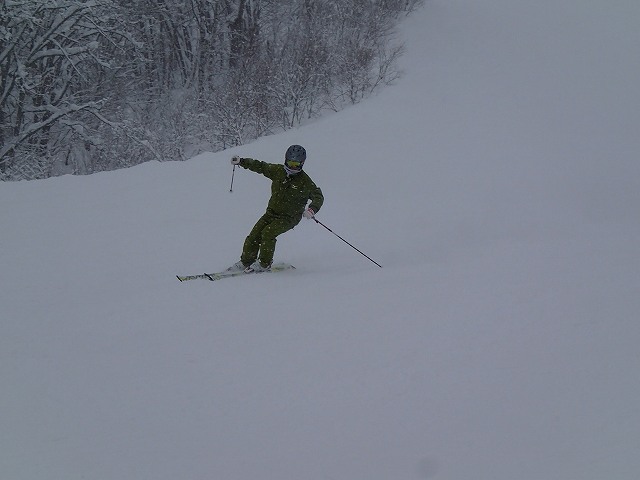 息子の滑り。だいぶ雰囲気がでてきました。谷回りの部分です。