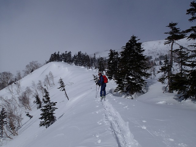 昨年の12月31日に、天狗蔵君とチャレンジし、ホワイトアウト状態で滑降できなかったラインへの再チャレンジです。