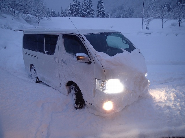 最後の約1kmは、除雪してない道路を必死に走ってきました。止まったら終わりの状態です。道路にもパウダースノーが積もっていたため助かりました。