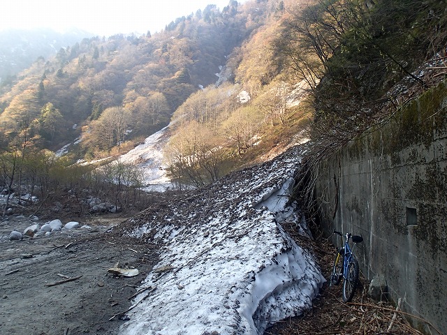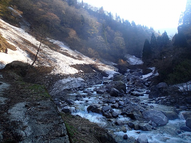 一昨年は、5月の下旬に片貝山荘の上、阿部木谷へ向かう橋の横まで車で入ることができました。基本的には、5月下旬に入山する人が多いようです。ただ、この時期になると快適な滑降の度合いは減ってしまいます。