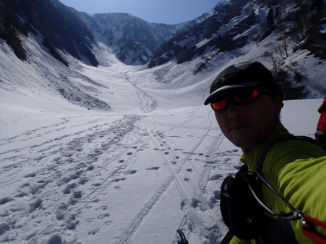 今年もやはり、連休にトライ。例年より雪が多く、6月上旬までこの谷を利用できるのではないでしょうか。