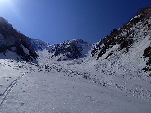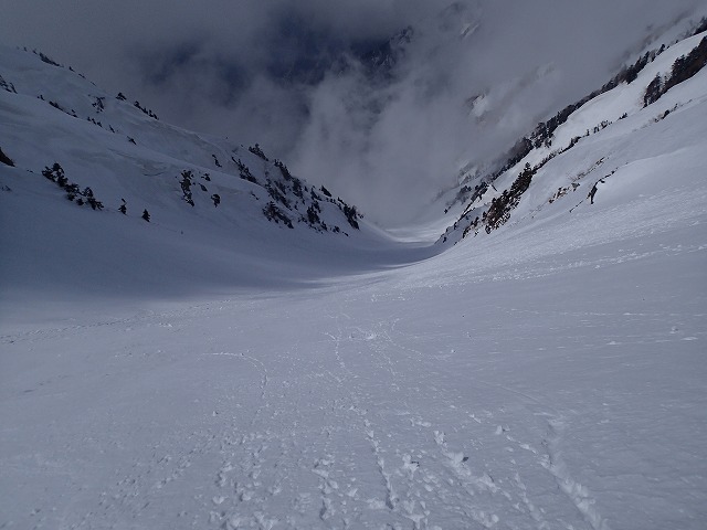 3月30日にプチ山スキーで行ったときに間違って降りそうになった谷。ここでも良かったみたい。
