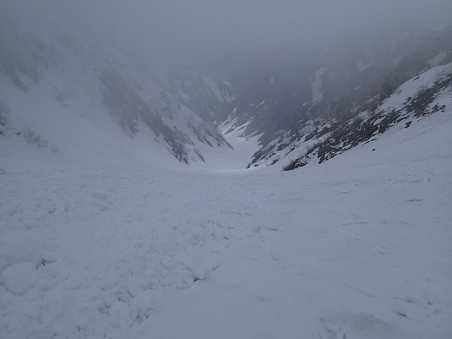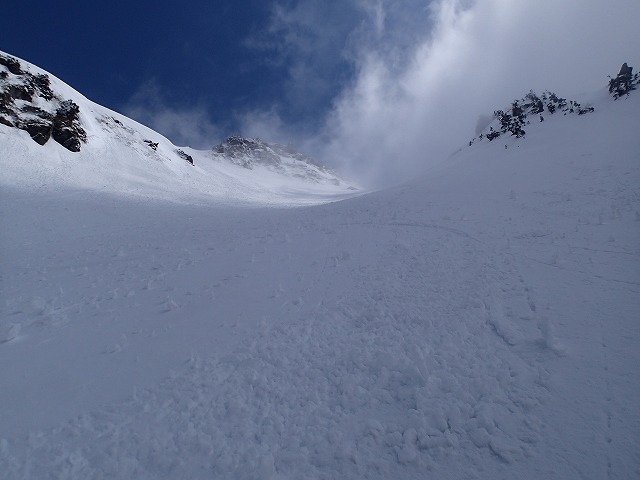 ガスも出てきました。デブリは、新しいので崩れてくれますが、やはり滑りづらい。