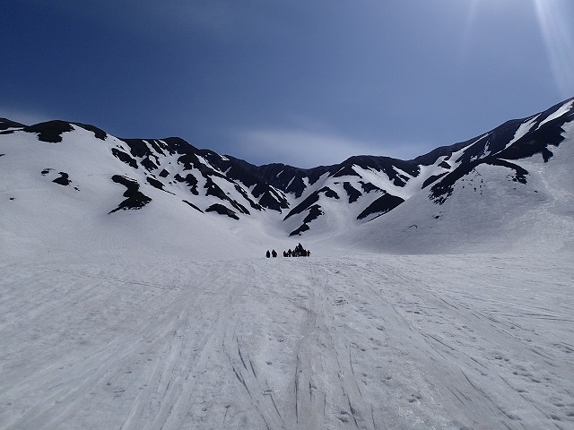 御前から滑ってきた剱沢前半部分。スキー場のようです。