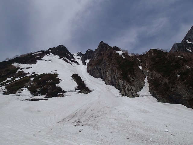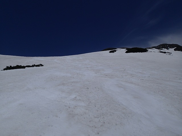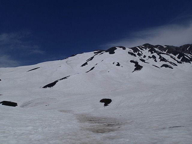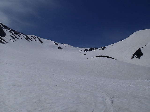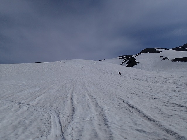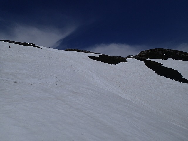 剣の山頂からの滑降は、5月中旬から下旬のこの時期がベストのようです。