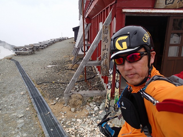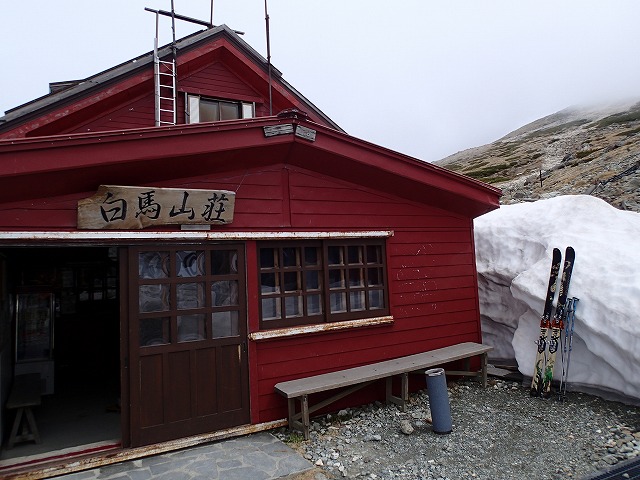 9:49 白馬山荘到着(スキー靴から登山靴にチェンジ)