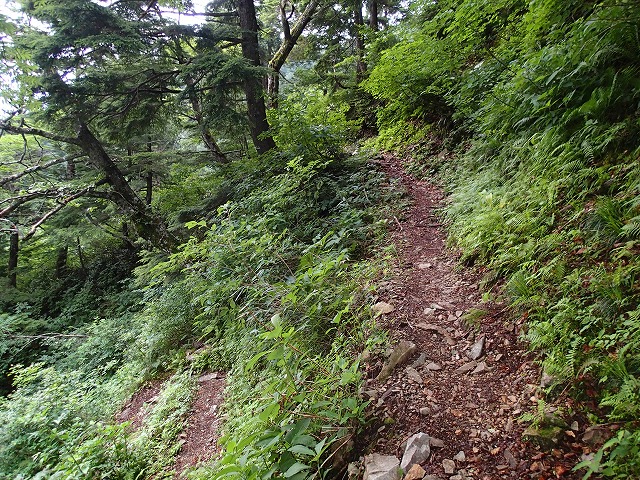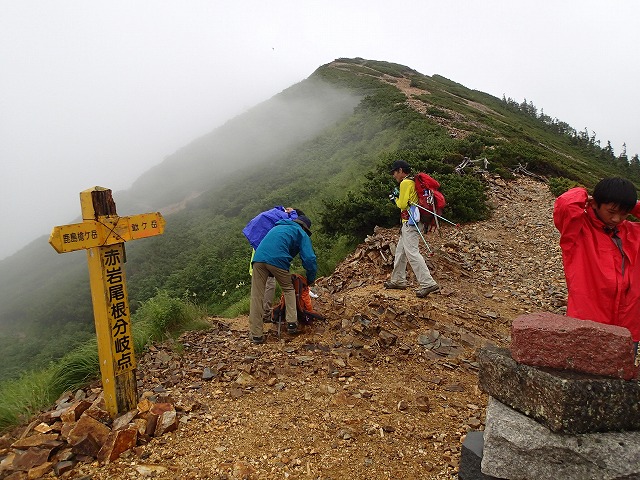 12:35 赤岩尾根に入ります。このあたりから雨が降り出しました。