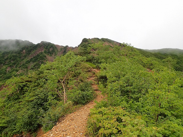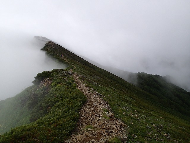 稜線の大町側で雲が発生しています。登山道もきれいに整備されています。