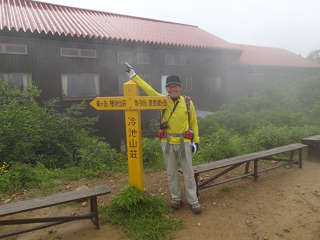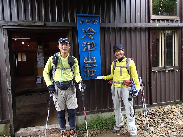 12:08 冷池山荘到着(西沢さんと楽しく会話)