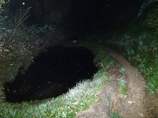 4:19 地塘通過。暗闇の世界は不気味です。誰かに見られているような、そんな錯覚が。いや 後ろにいたのかもしてません。これもまた夏の登山にぴったり。くわばらくわばら。