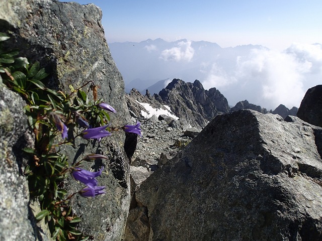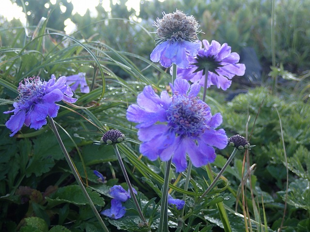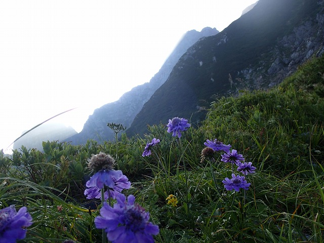 「タカネマツムシソウ」ここ早月尾根にこの色の花はきれいすぎます。