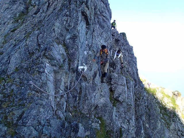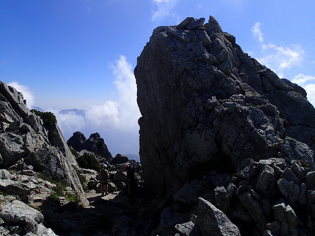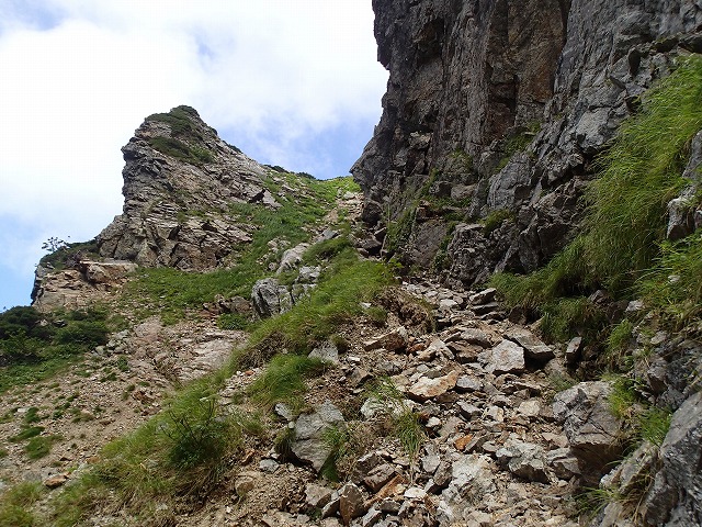 最初の難関「長次郎の頭」手前の斜面を登り、軽いロッククライムの後右側にまわりこんでいきます。