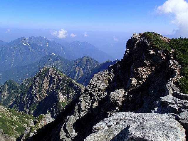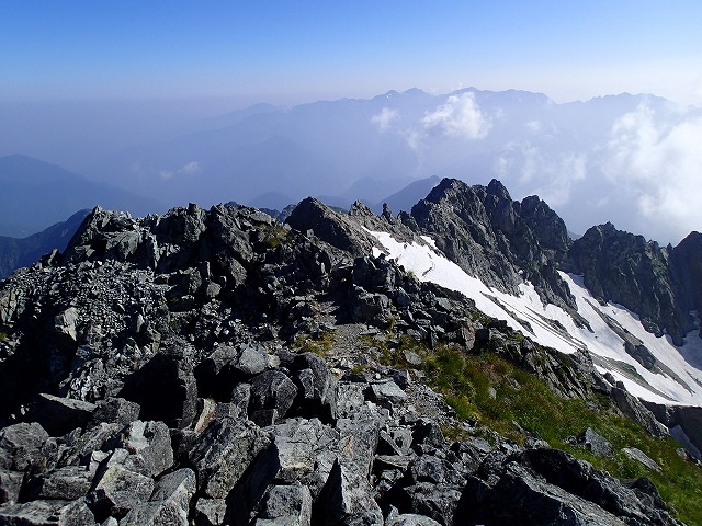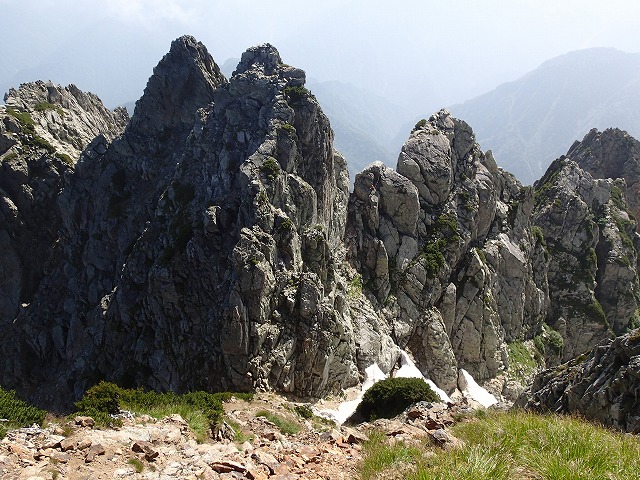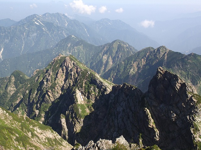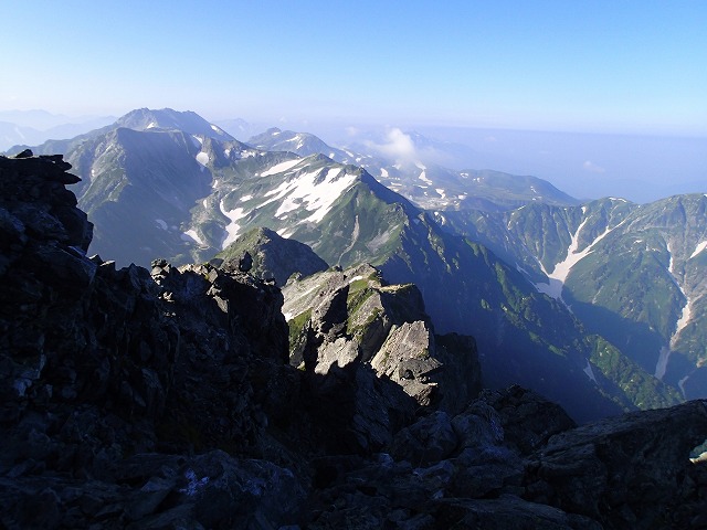 三ノ窓からの後ろ立山連峰 右から爺ヶ岳の2つの山頂 真ん中が鹿島槍ヶ岳 北峰・南峰 そしてまだ行っていない五竜岳。