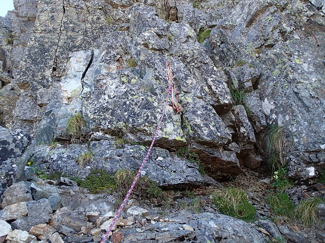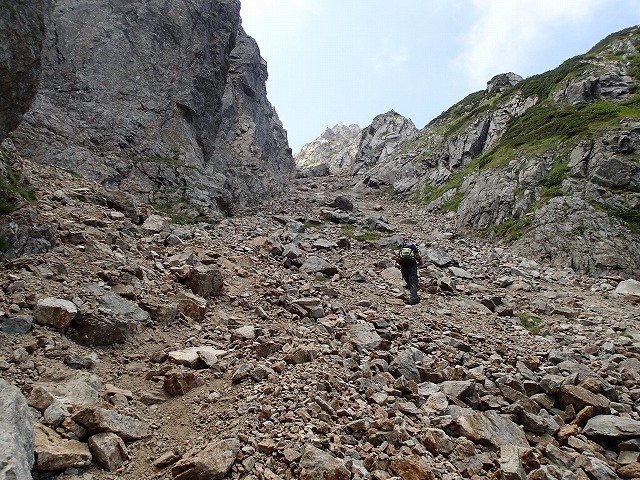 右側のがれ場を慎重に巻いて、下に降りることに成功。
