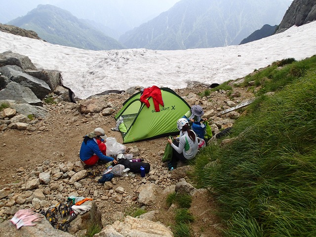 雪渓が計3つ出てきました。その内の一番傾斜がきつい雪渓でアイゼンを使いました。(この準備に時間がかかります。)