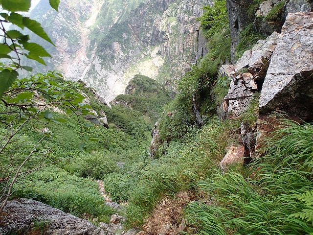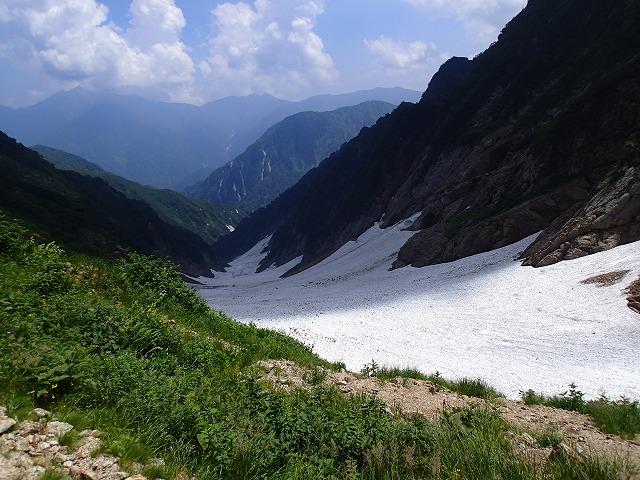小窓に着いたところで、小窓雪渓を降り、鉱山道を探したのですが、その入口が分かりません。