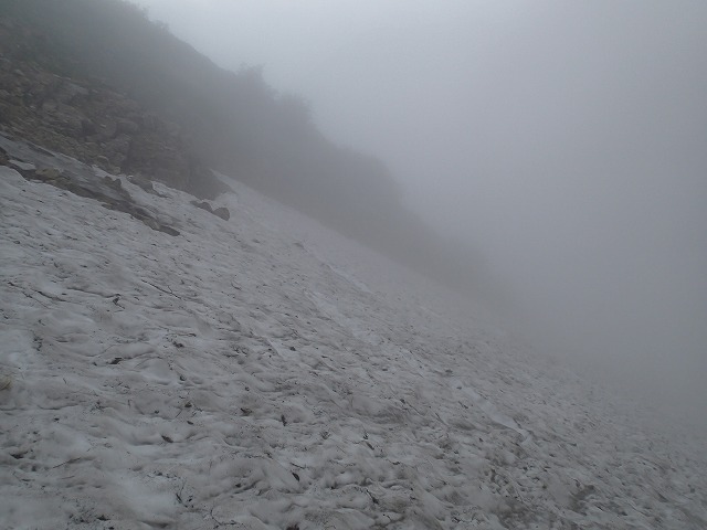 この後は、雪渓の上をアイゼンとピッケルを持ってひたすら下ります。時間との勝負となってきました。