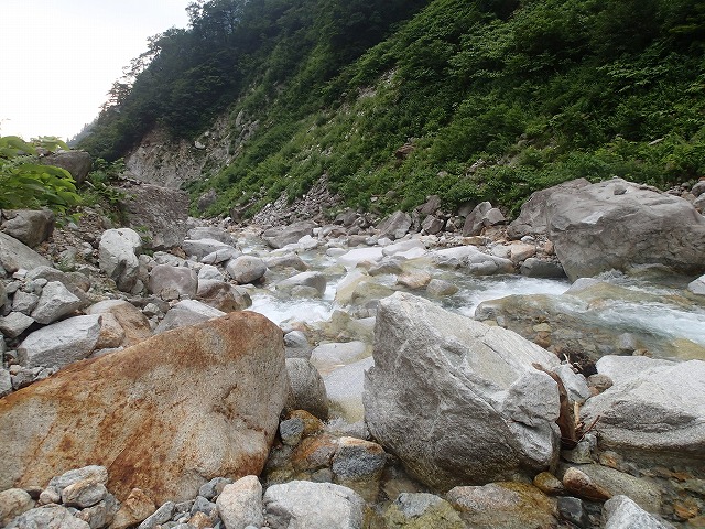 後は河原を下るのみです。大きな雷岩までひたすら下ります。ここの河原の石は大きいためコースどりが大変です。