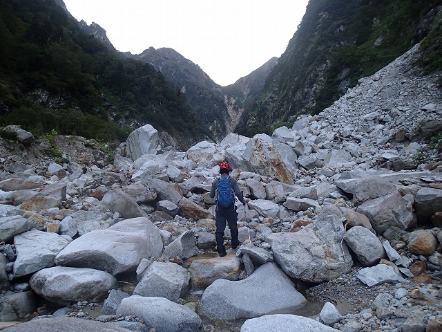 白萩川は、とにかく河原を登ります。石も大きく不安定です。