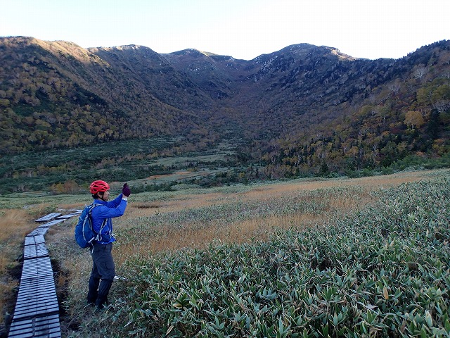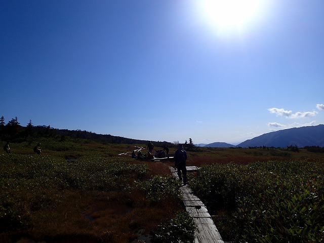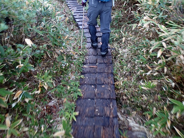 ここからの木道が大変危ない状態になっています。つるつるでまともに歩けません。