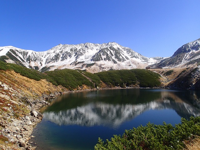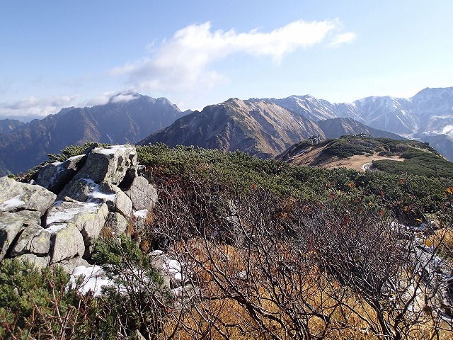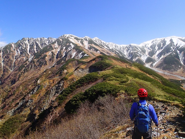 初冠雪の剣岳や立山一帯の山々の素晴らしい眺めに、感動しながらの山行でしたが、なかなか一人では行けそうにありません。