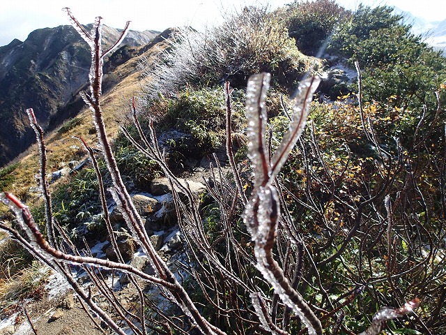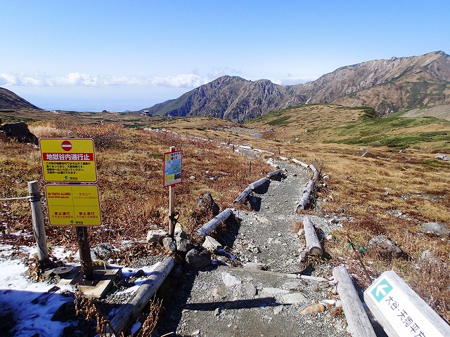 この日は、立山一帯が初冠雪があったようで、2000mを越えると、登山道にも雪が積もっています。