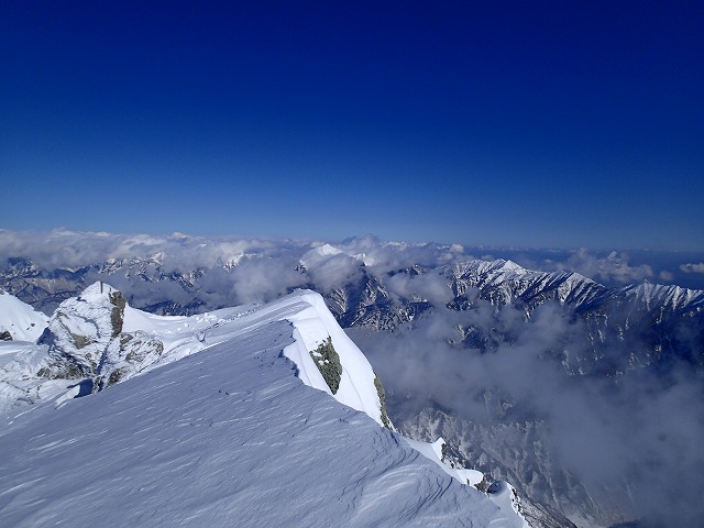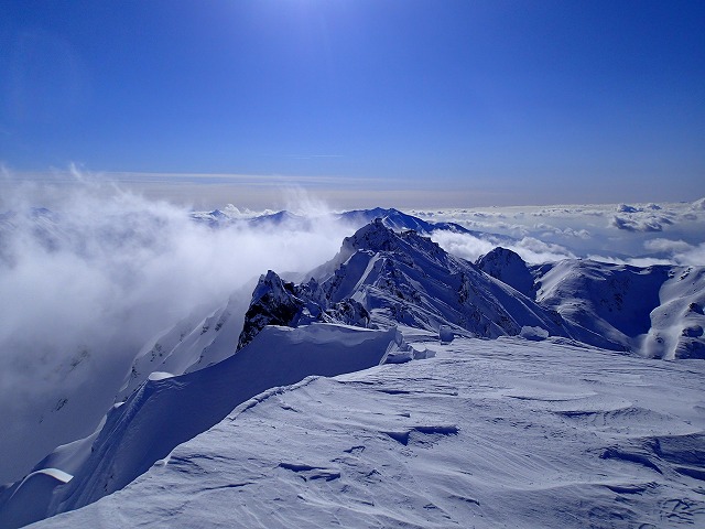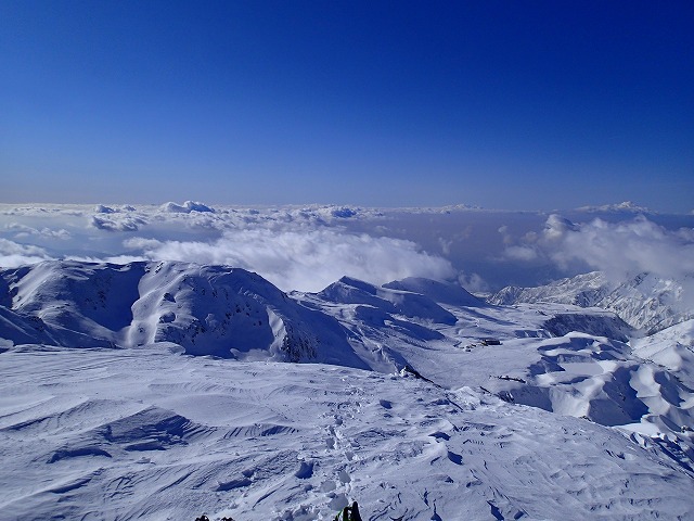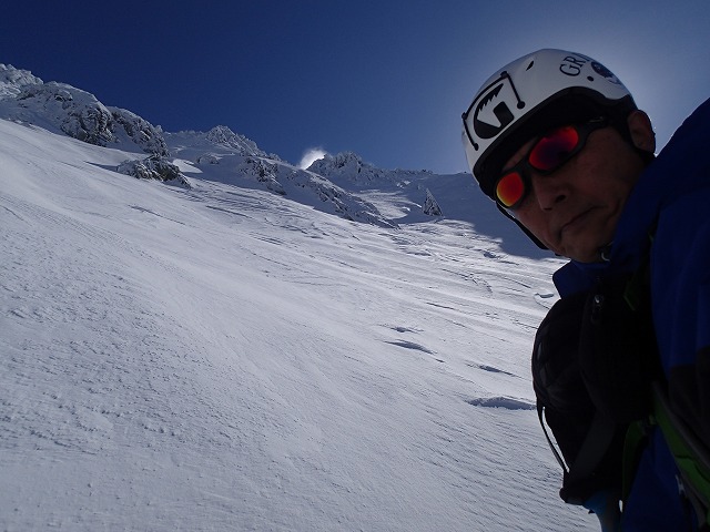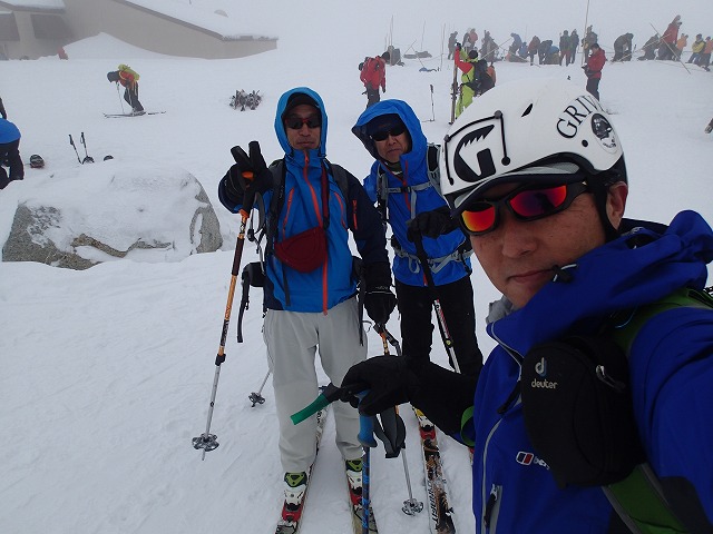 今回、山崎カールを登りつめ、無事「大汝山3015m」からの大滑降を行うことができました。