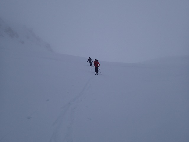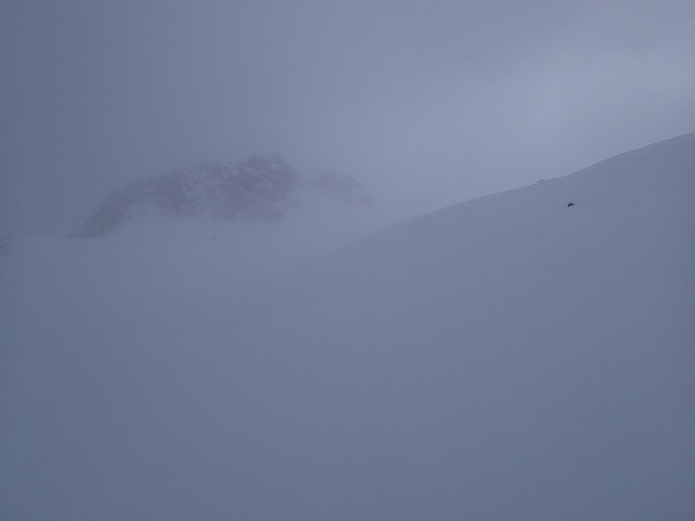 11:00 山崎カール突入(ここまでガスで何も見えない状態。GPSを便りに)