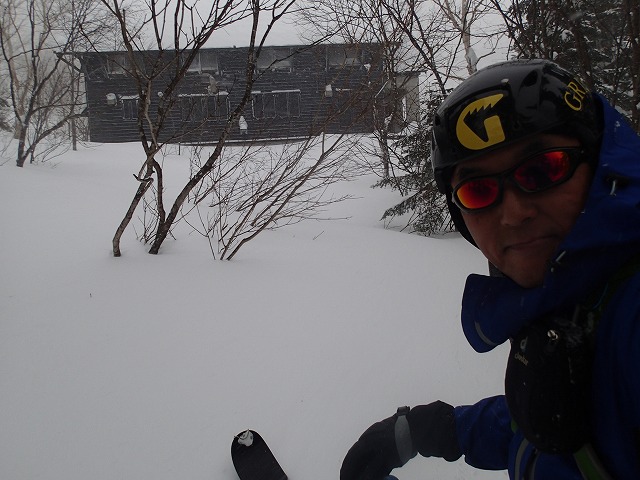 この後は、ハイクしてきた跡をたどって成城大学小屋前まで、快調な滑降を楽しむことができました。