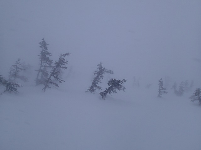 天狗原の祠までは行きたかったのですが、ホワイトアウト状態となってきたため、目印の樹木があるといころで今日は終了としました。