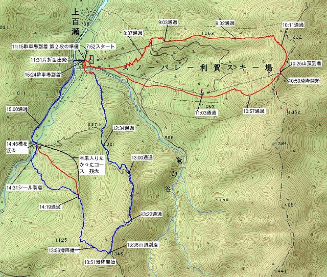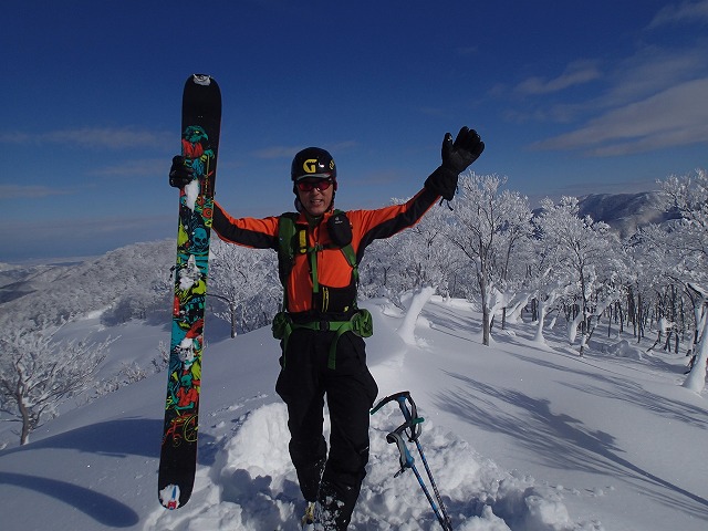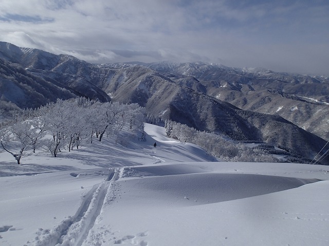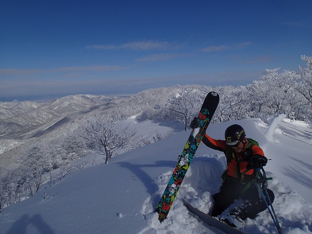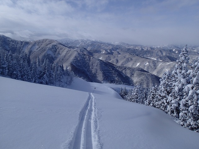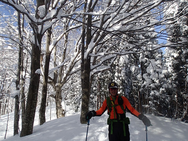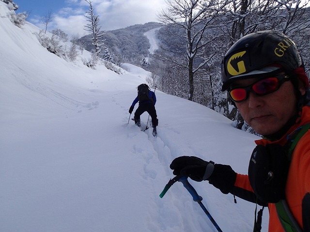 片折岳からの滑降ラインが問題でした。一番滑りたかった尾根に行き着くことができず残念。